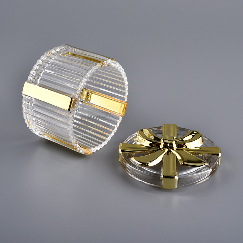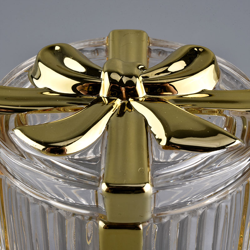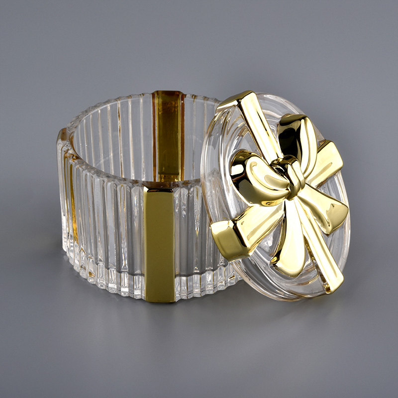 bowknot تصميم أوعية الشموع الزجاجية الذهبية مع غطاء من صني زجاجيات