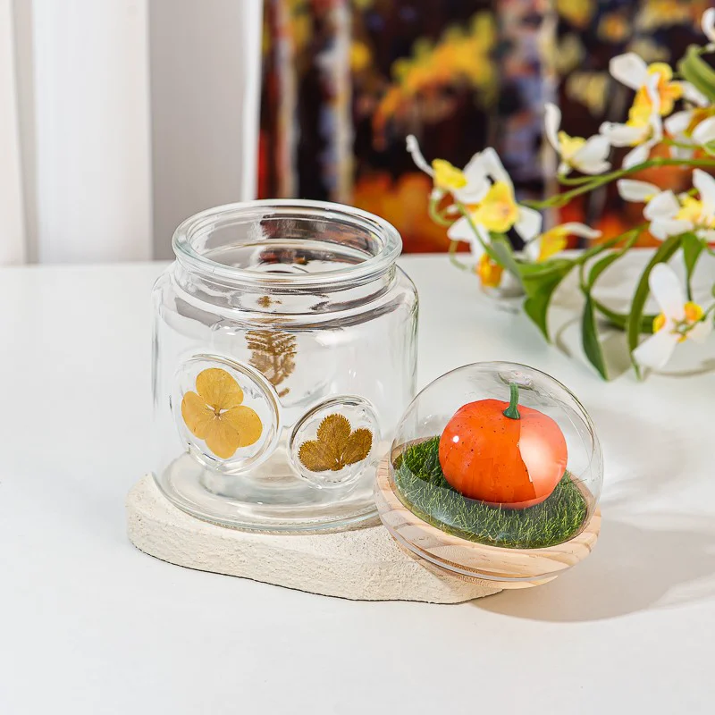 منزل، بيت > فئة > حامل شموع زجاج > ديكور المنزل، برطمان زجاجي ذو لمسة نهائية فريدة، وعاء شموع زجاجي سعة 511 مل مع غطاء إبداعي