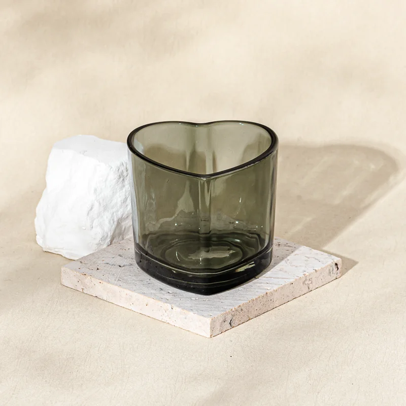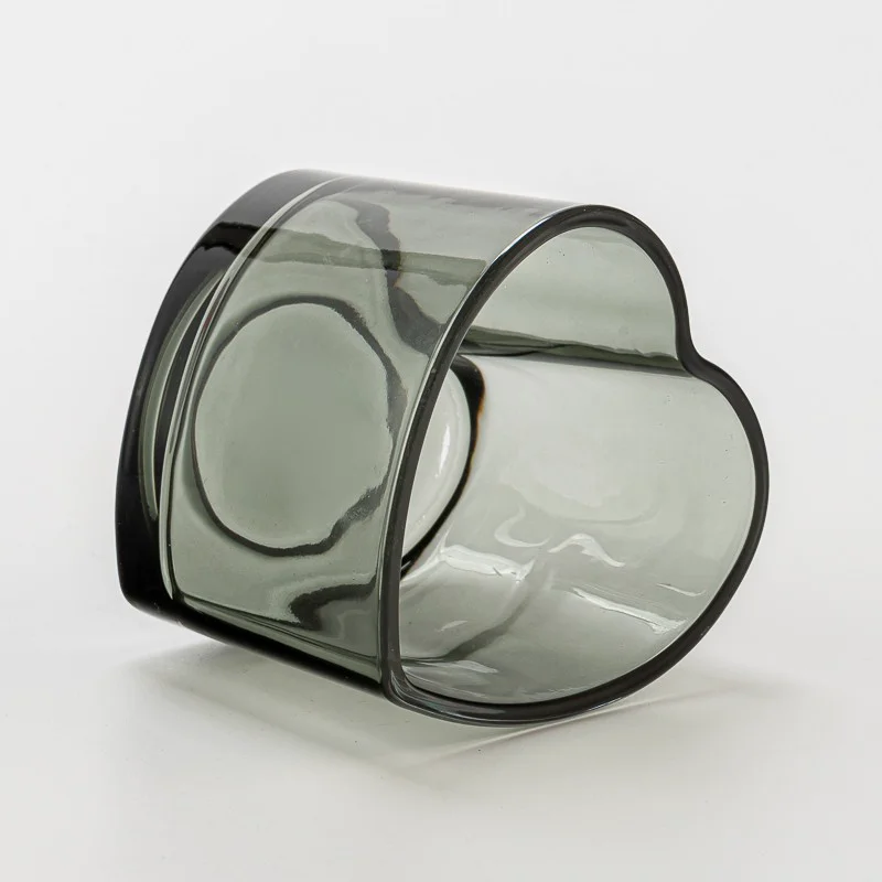 Hot Sale Heart Shape Style Transparent Black Glass Candle Vessel  Hot Sale Heart Shape Style Transparent Black Glass Candle Vessel