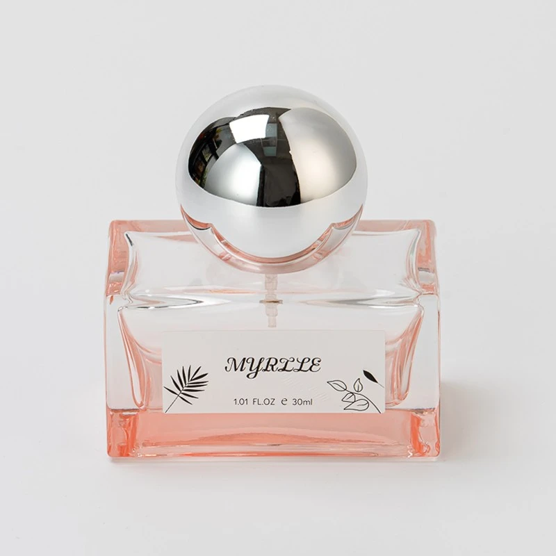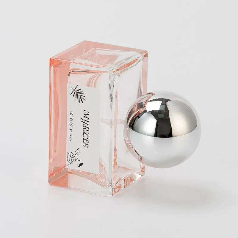 特殊设计方形玻璃香水瓶带有金属球帽 |