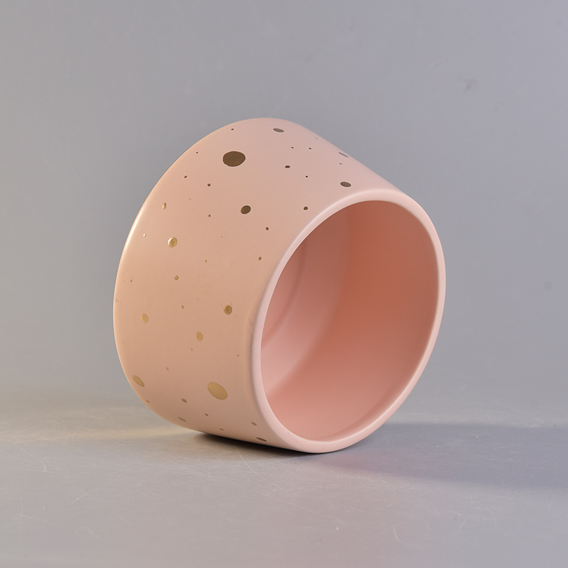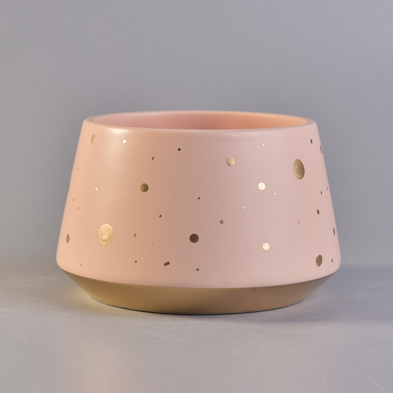 Keramisches Kerzengefäß in einzigartiger Form mit goldenen Farbpunkten |