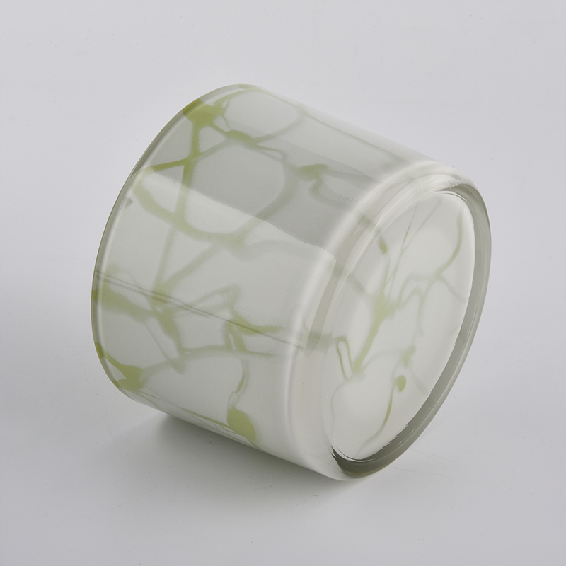 Pots à bougie en verre vert avec extérieur blanc dépoli de Sunny Glassware