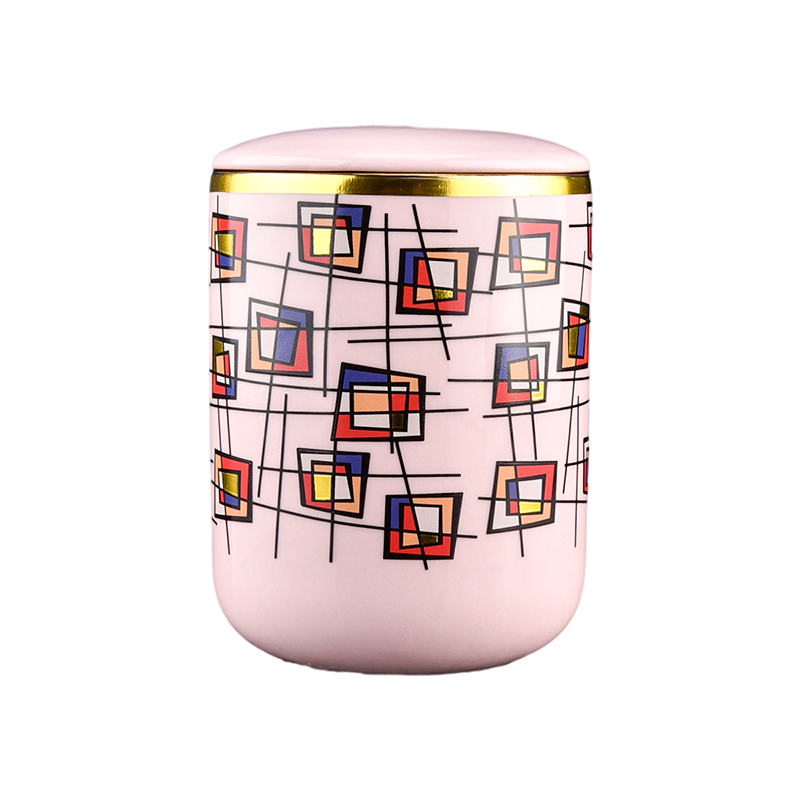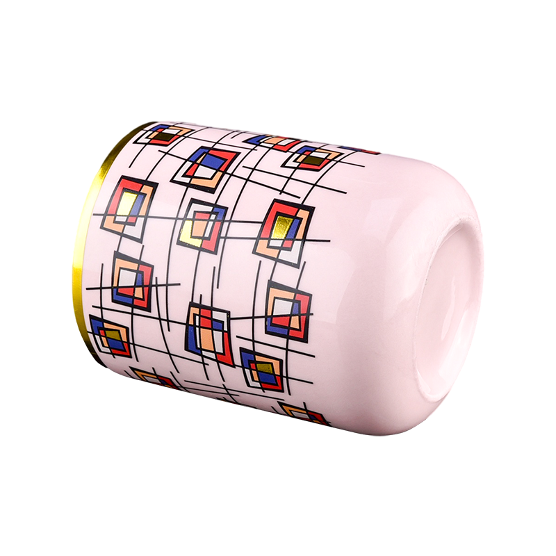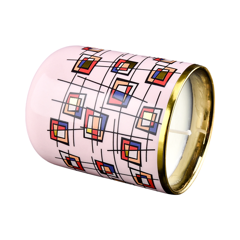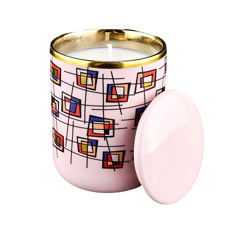 Balang Lilin Seramik Berlapis Emas Geometrik Impian Rekaan Baharu dengan Tudung |