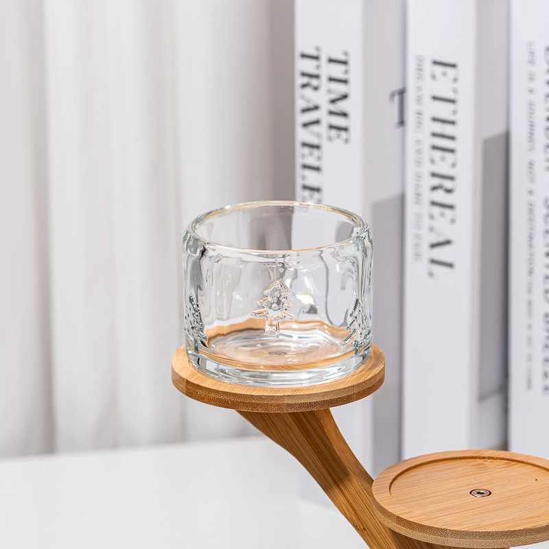 Home > Category > Glass candle holder > Fancy Tree Pattern Clear Glass Vessel 5oz Empty Candle Jar Glass