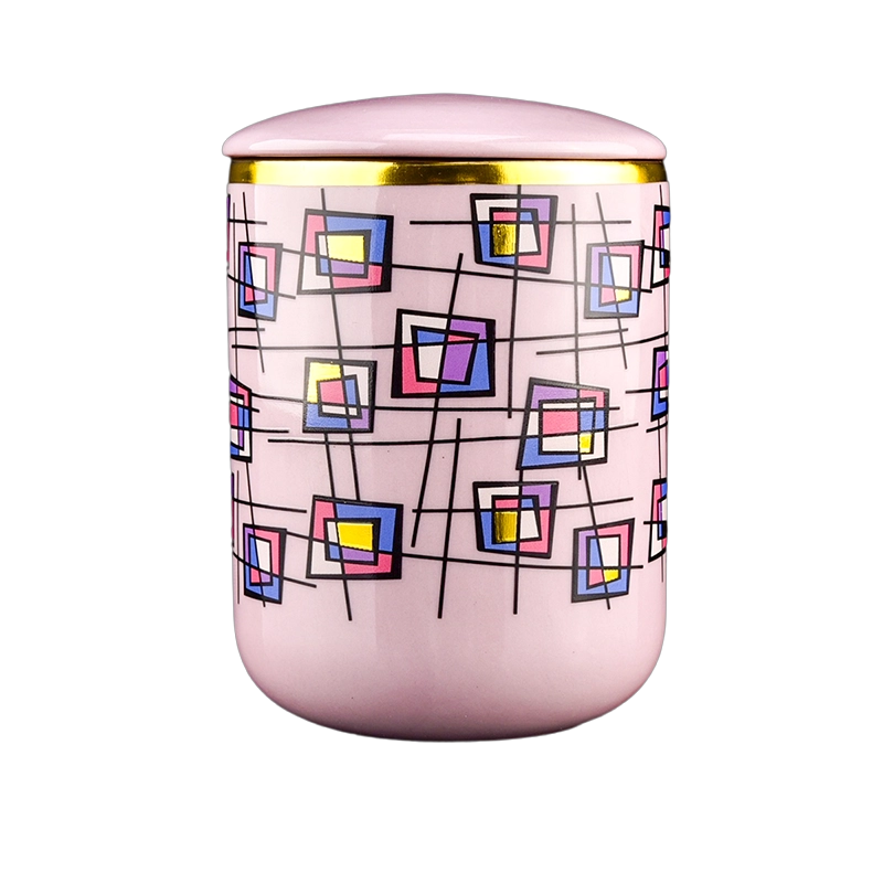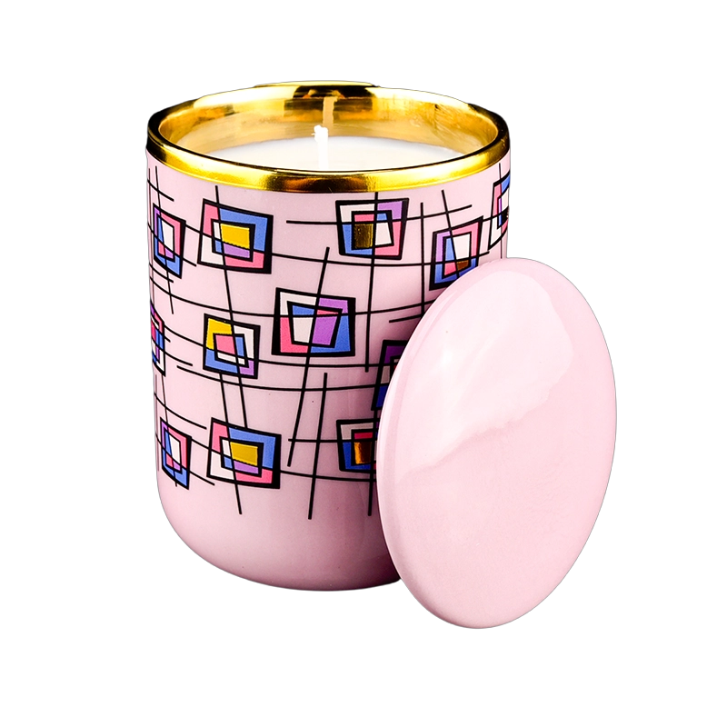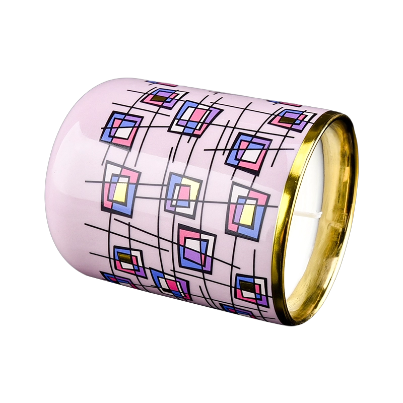 Luxury Custom Geometric Dream Gilded Ceramic Candle Jar with Lid |